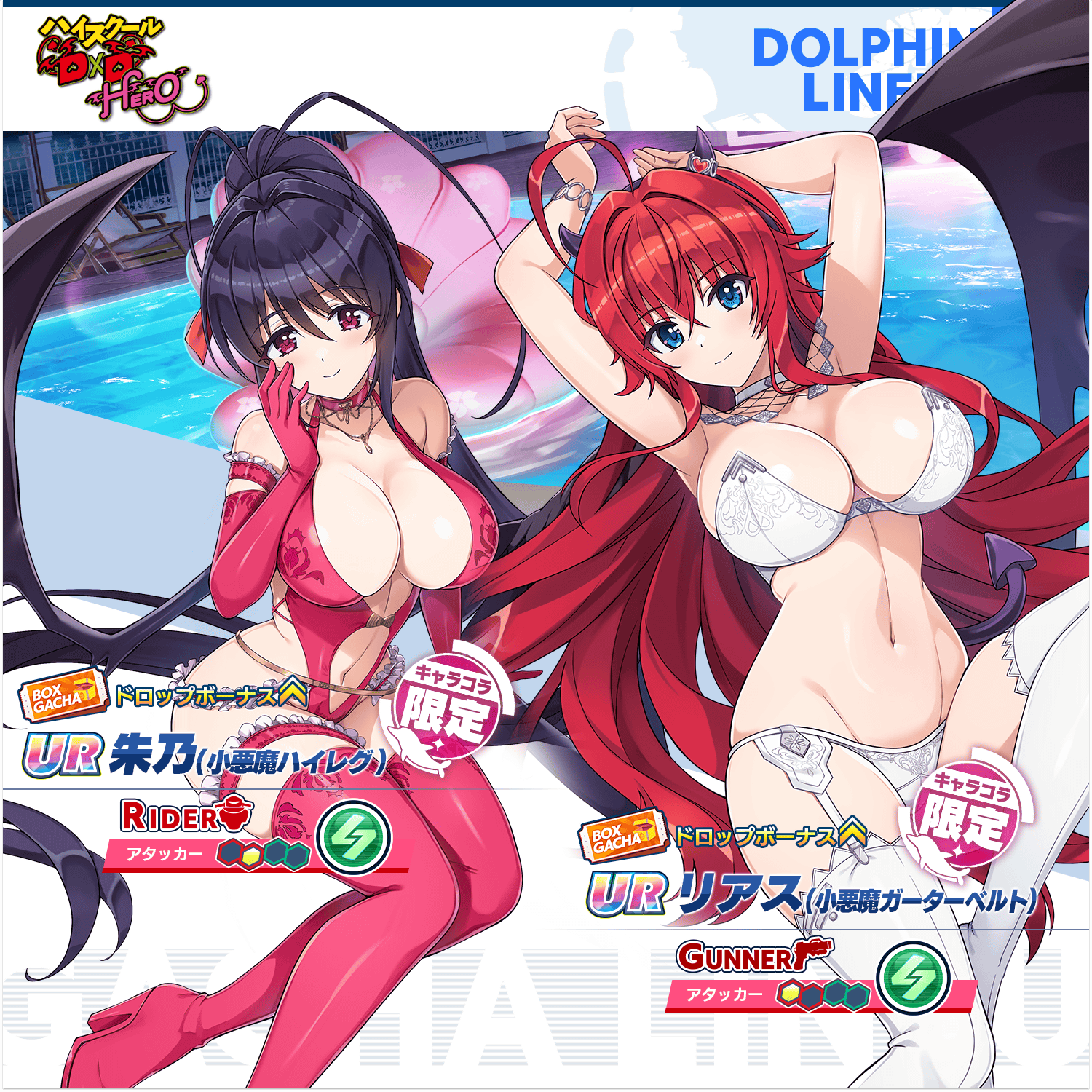 「ハイスクールD×Dコラボドルフィンフェスガチャ」で登場する「UR 朱乃(小悪魔ハイレグ)」と「UR リアス(小悪魔ガーターベルト)」をご紹介!