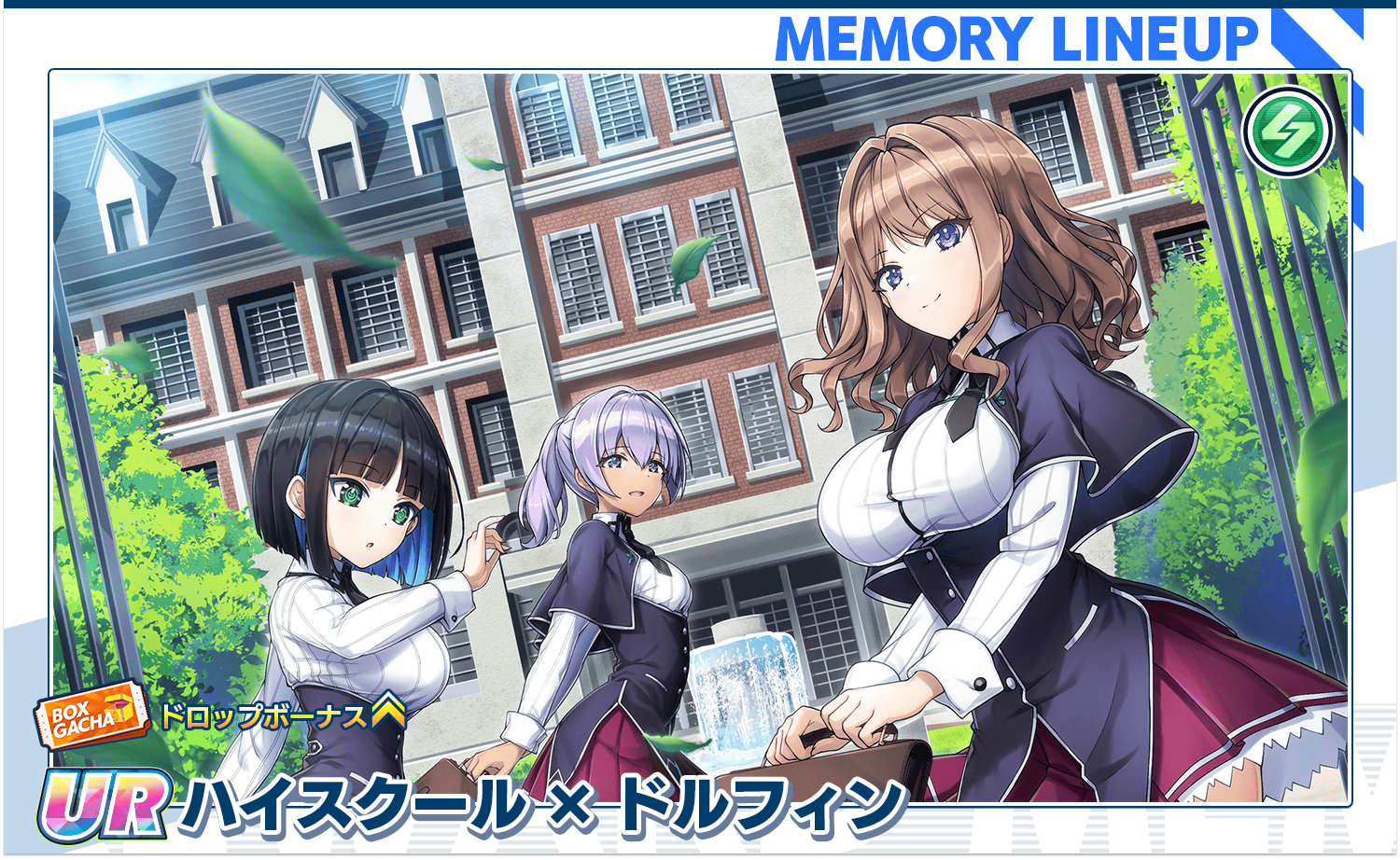 イベントBOXガチャでは、コラボ限定メモリー「ハイスクール×ドルフィン」を獲得することができます。