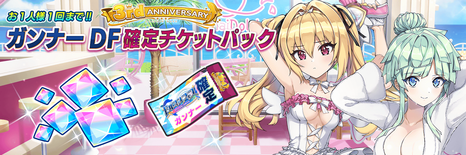 10/20(月)掲載のお知らせ「3rd Anniv.DF確定チケットガチャ(ガンナー)開催!」もご確認ください。