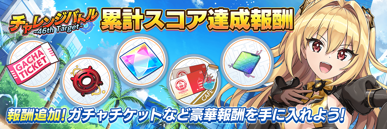 チャレンジバトルで記録されたスコアの累計に応じて累計スコア報酬が入手できます