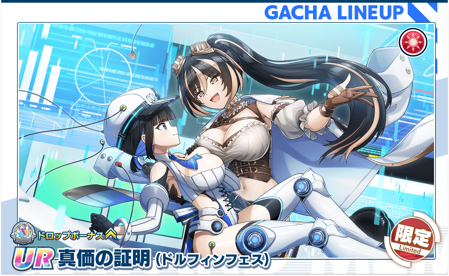 ※ドルフィンのステータスにつきましては、「ドルフィンフェスCLASSガチャ(chemistry)」の「ピックアップ詳細」よりご確認ください。