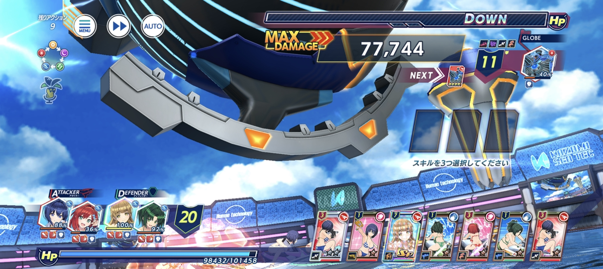 DOWN中は、残りのアクション回数が終わるまでプレイヤーのターンになり、チャレンジボスへダメージを与え続けることができます。